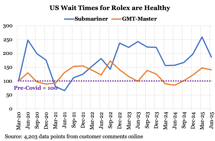 US tariffs on Switzerland are clearly having an impact on WOSG. Before I discuss that, I think it’s worth recognizing that the US market for Rolex remains healthy and that WOSG’s position within it continues to strengthen.